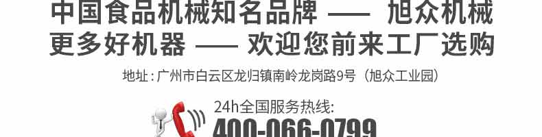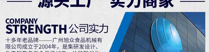 廣州旭眾食品機械有限公司是一家集科研開發(fā),生產(chǎn)設(shè)計,營銷服務為一體的現(xiàn)代化生產(chǎn)企業(yè)。現(xiàn)代化生產(chǎn)車間,精湛制造技術(shù),所產(chǎn)機械歷經(jīng)市場重重考驗,不斷贏得海內(nèi)外客戶的贊譽。