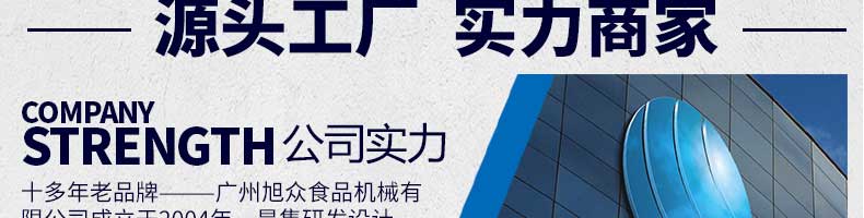 廣州旭眾食品機(jī)械有限公司是一家集科研開(kāi)發(fā),生產(chǎn)設(shè)計(jì),營(yíng)銷(xiāo)服務(wù)為一體的現(xiàn)代化生產(chǎn)企業(yè)?,F(xiàn)代化生產(chǎn)車(chē)間,精湛制造技術(shù),所產(chǎn)機(jī)械歷經(jīng)市場(chǎng)重重考驗(yàn),不斷贏得海內(nèi)外客戶(hù)的贊譽(yù)。