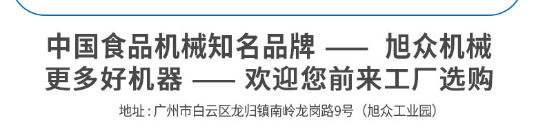 廣州旭眾食品機(jī)械有限公司是一家集科研開發(fā),生產(chǎn)設(shè)計,營銷服務(wù)為一體的現(xiàn)代化生產(chǎn)企業(yè)。現(xiàn)代化生產(chǎn)車間,精湛制造技術(shù),所產(chǎn)機(jī)械歷經(jīng)市場重重考驗,不斷贏得海內(nèi)外客戶的贊譽。