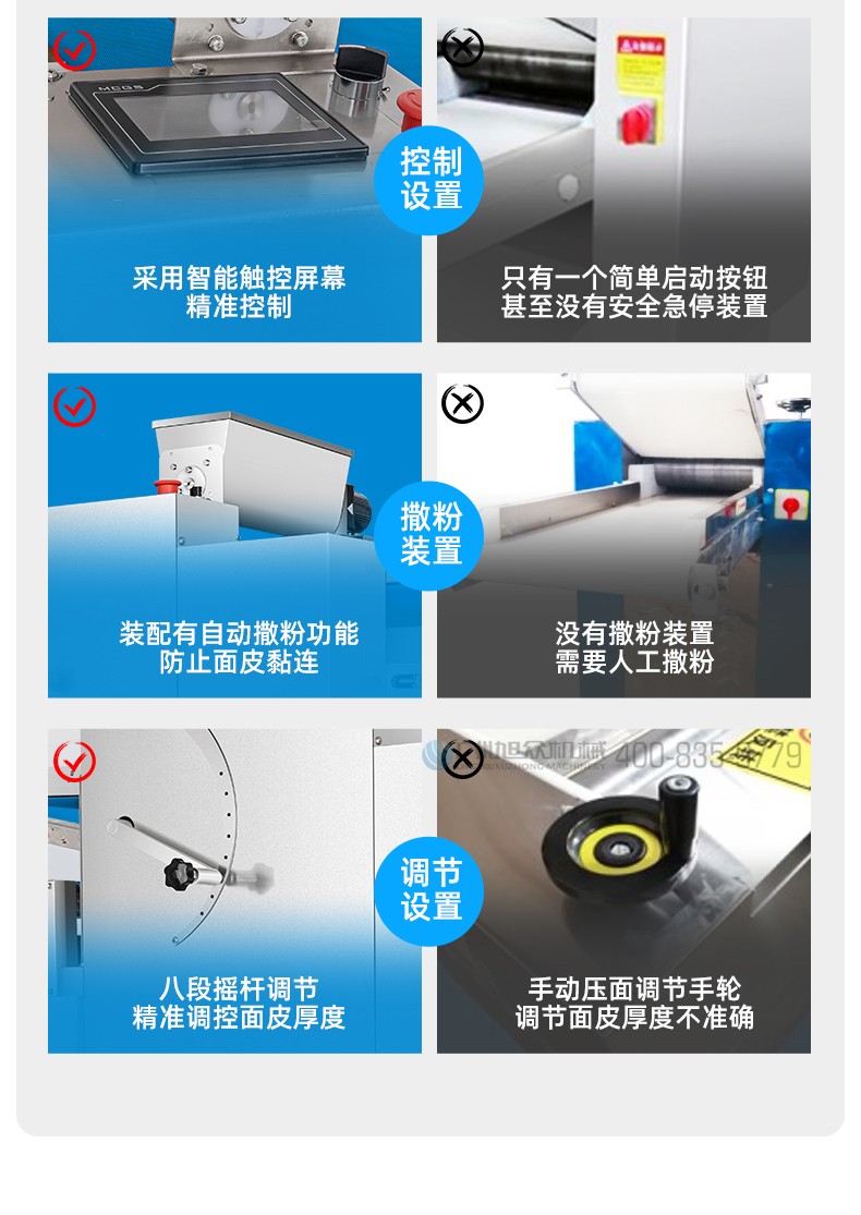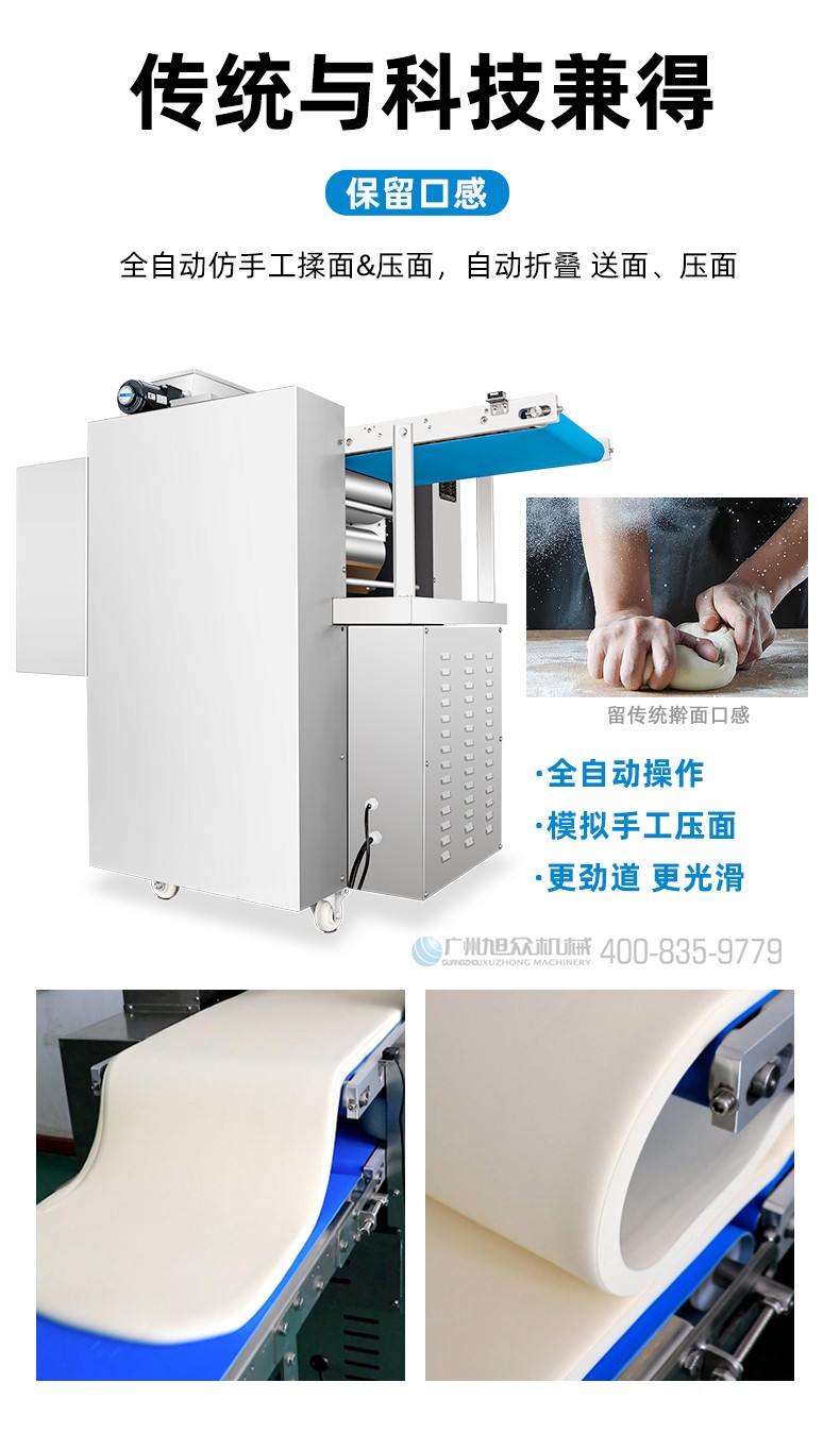 XZ-ZDYMJ370型自動折疊壓面機(jī),整機(jī)不銹鋼機(jī)身打造,真材實(shí)料,選用不銹鋼材質(zhì),打造經(jīng)久耐用、防腐蝕。匠心細(xì)節(jié),彰顯品質(zhì)貼心設(shè)計。一鍵設(shè)定壓面次數(shù),智能定時,只需設(shè)定好壓面次數(shù),就能全自動壓面出面。