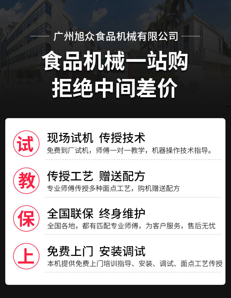 廣州旭眾食品機(jī)械有限公司是一家集科研開發(fā),生產(chǎn)設(shè)計,營銷服務(wù)為一體的現(xiàn)代化生產(chǎn)企業(yè)。現(xiàn)代化生產(chǎn)車間,精湛制造技術(shù),所產(chǎn)機(jī)械歷經(jīng)市場重重考驗,不斷贏得海內(nèi)外客戶的贊譽(yù)。