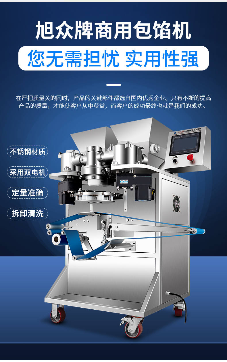 SZ-69型多功能自動包餡機(jī),餡斗/面斗,可整個拆卸清洗,增加了自動拔料功能。月餅鳳梨酥紅桃裸湯圓南瓜餅軟餡餅。在嚴(yán)把質(zhì)量關(guān)的同時,產(chǎn)品的關(guān)鍵部件都選自國內(nèi)優(yōu)秀企業(yè)。只有不斷的提高產(chǎn)品的質(zhì)量,才能使客戶從中獲益,而客戶的成功最終也就是我們的成功。
